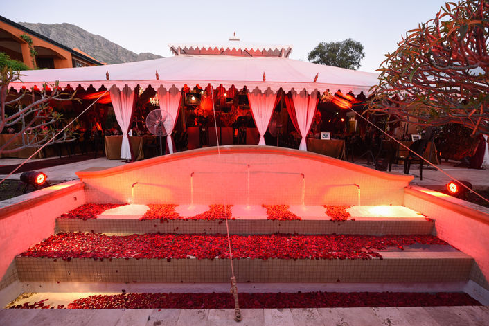 We set up our Grand Raj in the beautiful quadrangle of La Residence in Franschhoek for an amazing 50th birthday party.