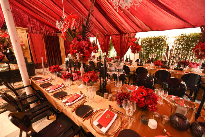 Afresh Events designed and decorated the Moroccan-themed event in opulent red drapery and luxurious interior décor.